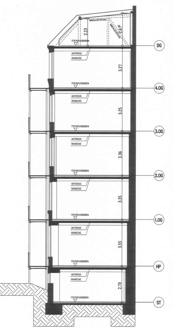Die lichten Raumhöhen wurden zwischen dem Fertigfußboden und der UK.Rohdecke gemessen